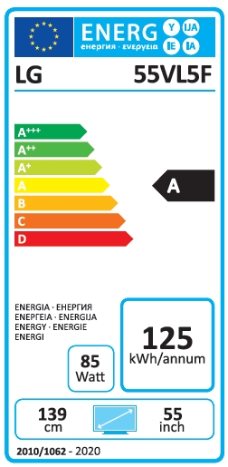 LG 55VL5F-A, Panneau plat de signalisation numérique, 139,7 cm (55"), LED, 1920 x 1080 pixels, 24/7