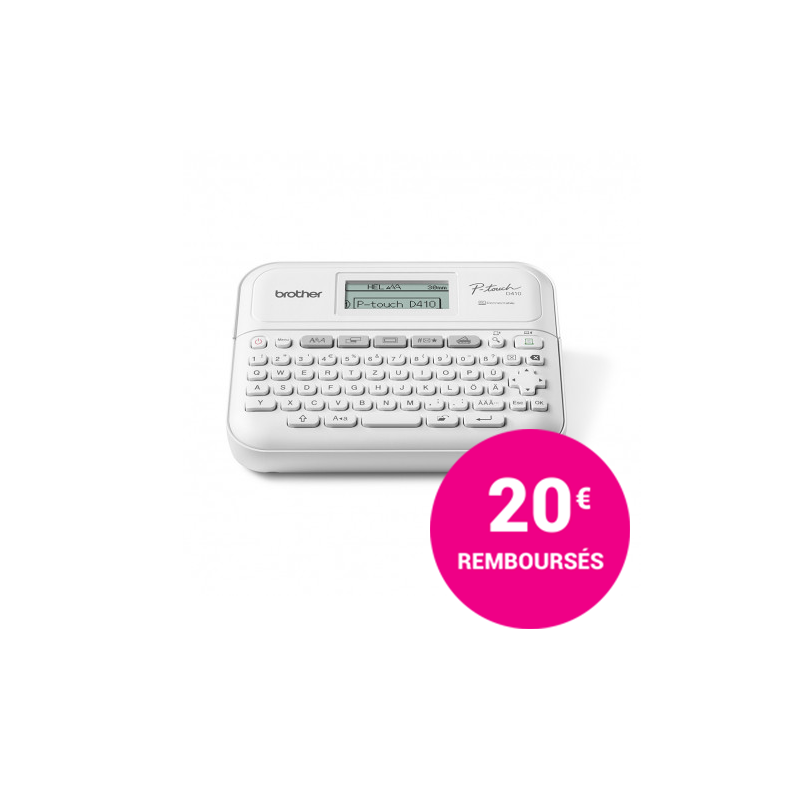 Brother PT-D410 | Etiqueteuse bureautique professionnelle, AZERTY, TZe, Transfert thermique, 20 mm/sec, Avec fil, AA