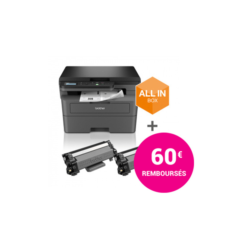 Grâce au ALL IN BOX, profitez de l’acquisition de 2 toners d’une capacité totale jusqu’à 6 000 impressions et de la garantie 3 ans incluses pour votre tranquillité d’esprit. Optimisez votre productivité en travaillant de manière plus flexible, que ce soit à domicile ou au bureau, grâce à l'imprimante laser Brother DCP L2627DWXL parfaitement connectée. Éligible au forfait EcoPro.
